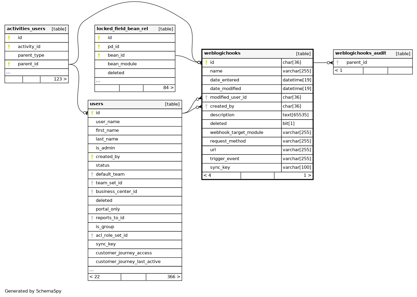 | idx_weblogichooks_del_d_e | Performance | Asc/Asc/Asc | deleted + date_entered + id |